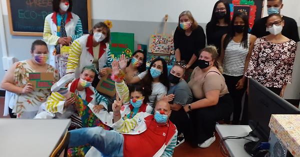 Nella realizzazione del gioco sono stati usati tutti materiali di riciclo (come stecchini del gelato, tappi dei succhi di frutta ricoperti di gomma, carta da pacchi, bottoni). «Anche la plancia del gioco – ha continuato Deborah Buttaci – non è altro che un vecchio gioco rivestito. Tutte cose che, altrimenti, sarebbero state buttate». Scopo del gioco è quello di insegnare le regole fondamentali per aiutare l’ambiente. «Ci sono delle cartelline – illustra Deborah Cognolato – denominate “ostacoli” e “opportunità”. Tirando dei dadi e pescando le carte, oltre a giocare, si imparano così i comportamenti corretti, piccole azioni che fanno la differenza». Realizzato nell'arco di circa quattro lezioni, il gioco risulta essere divertente e coinvolgente. «Le regole sono emerse in corso d’opera – dicono ancora gli alunni – cambiate o modificate dopo ragionamenti comuni». A ricevere “Eco-Polis”, alcuni rappresentanti dell’associazione di clownterapia “L’Arte del sorriso” tra cui Sara Ravizza, in arte Pipirì, nel doppio ruolo di alunna e clown del sodalizio. «Siamo contenti di questo regalo – hanno ringraziato i volontari presenti – che porteremo sicuramente con noi in occasione della prossima Giornata del Naso Rosso».