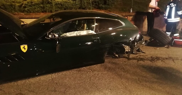 Poco dopo aver superato l’ingresso della villa La Camillina, l’impatto. Forse uno scarto improvviso, tanto che i due mezzi hanno cozzato uno contro l’altro. La Ferrari ha letteralmente perso la ruota posteriore sinistra, con gravi danni alla carrozzeria.