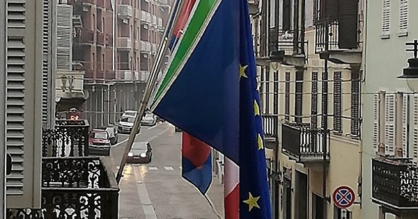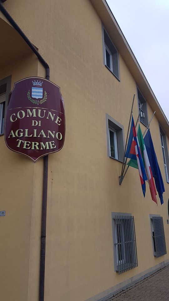 Le bandiere a mezz'asta del Comune di Agliano Terme