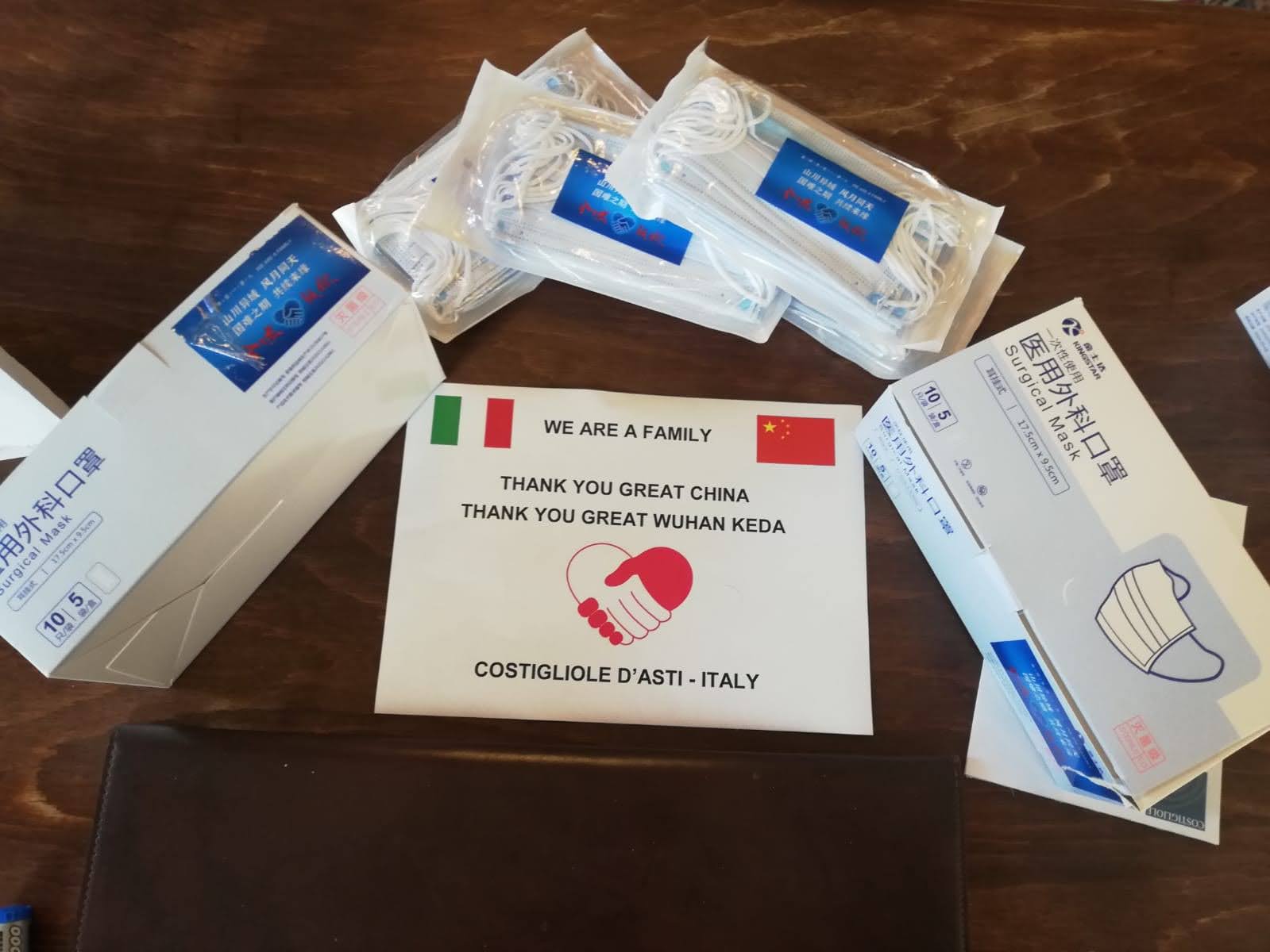 Solidarietà dalla Cina anche in territorio costigliolese. Una fornitura di 2 mila mascherine è stata donata al Comune di Costigliole d'Asti dall’azienda cinese “Wuhan Keda” che ha sede appunto a Wuhan. «L’iniziativa che abbiamo avviato è stata possibile grazie all’interessamento di Carlo Lavina, costigliolese che ha da tempo rapporti di lavoro con la città cinese - spiega il sindaco Enrico Cavallero - Lo ringrazio per l’aiuto che rappresenterà un importante sostegno alla popolazione nella fornitura di mascherine di protezione e ringrazio l'azienda cinese». «Intanto nei prossimi giorni provvederemo ad una nuova distribuzione di mascherine alle famiglie attraverso i presidi giunti dalla Regione - ha aggiunto il sindaco nella sua consueta ed apprezzata comunicazione video ai costigliolesi dalle pagine social del Comune - E abbiamo pensato anche ai bambini, che cominceranno ad uscire di casa, almeno per le passeggiate: abbiamo ordinato una fornitura di mascherine di taglia più piccola proprio per loro e appena possibile le consegneremo ai nostri più piccoli concittadini».