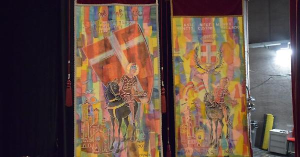 Nella foto, i Drappi del Palio 2021 dipinti da Filippo Pinsoglio.