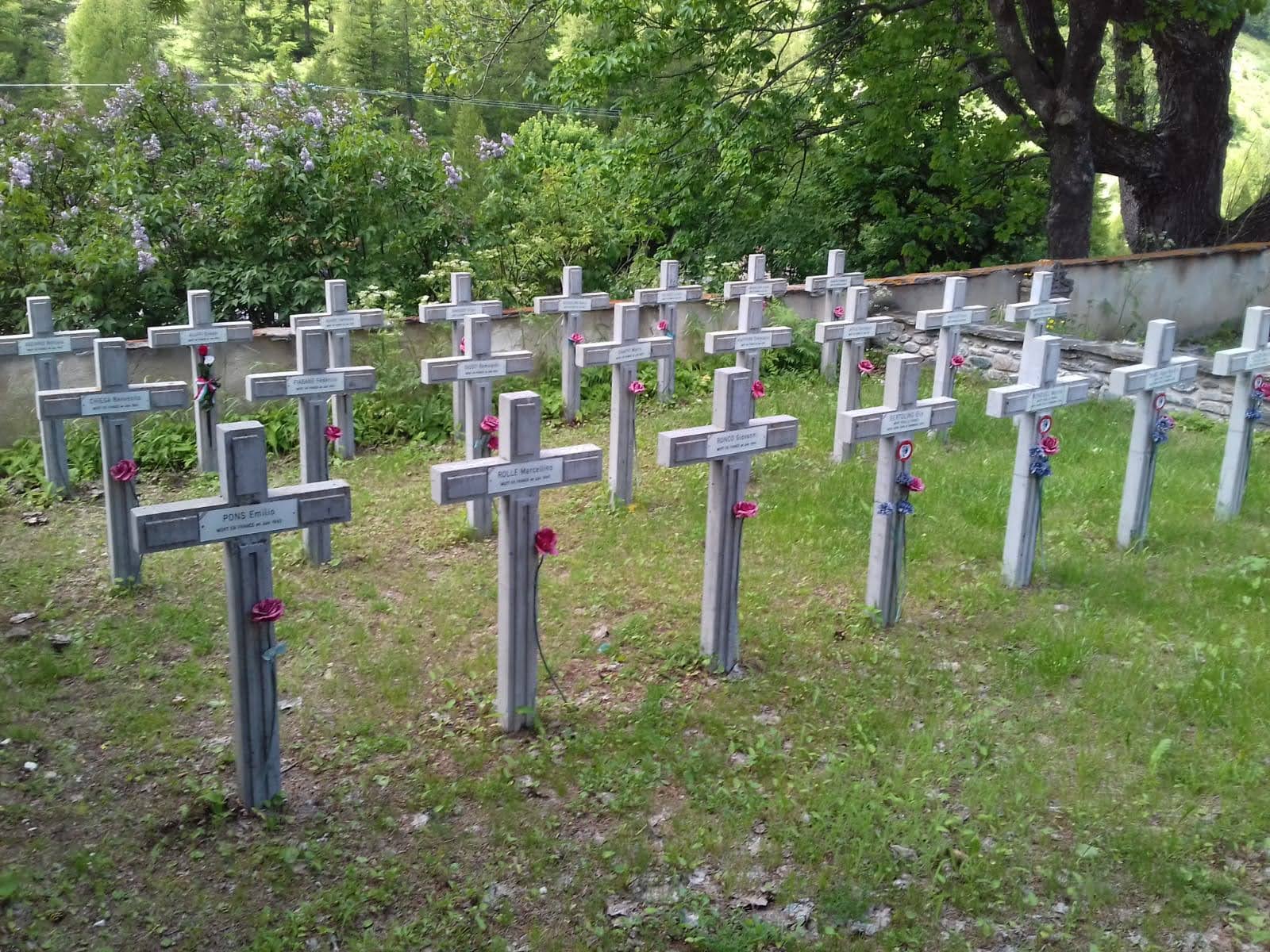 «Dal 2005 in una porzione del piccolissimo cimitero di “La Monta”, grazie al Comitato Francese di Onoranze ai Caduti, è stato realizzato un sacrario militare d’onore, posizionando una croce per ciascun caduto (19 italiani e 5 francesi) su cui è stato applicata una targhetta con il nome e cognome del militare, il tricolore della nazione di appartenenza, il mese e l’anno della morte. Fra questi caduti vi era mio zio, Donato Aluffi, non ancora ventenne, arruolato da pochi mesi e prontamente spedito al fronte ad affrontare il battesimo del fuoco per concorrere, anche lui con gli altri, ad inseguire quello scellerato desiderio di gloria del Duce - racconta Dino Aluffi - “E quando gli dissero di andare avanti, troppo lontano si spinse a cercare la verità, ora che è morto la patria si gloria d'un altro eroe alla memoria”, come diceva Fabrizio De Andrè nella sua canzone “La ballata dell’eroe”. A mio zio è stata attribuita anche la Medaglia d’Argento al Valor Militare alla memoria per l’eroismo dimostrato nell’azione, ma la mamma, già vedova, che lo attendeva a casa assieme al fratello Valerio (mio padre), non ha trovato conforto “nella gloria di una medaglia alla memoria”». Alla memoria l’elenco dei morti del Battaglione Val Pellice: Bussolino Dario, Fiabane Federico, Marrone Alberigo, Giusti Romualdo, Pons Emilio, Audenino Battista, Chiesa Benvenuto, Marello Carlo, Laiolo Giuseppe, Avaro Clemente, Chiappero Tommaso, Grasso Mario, Rolle Marcellino, Ronco Giovanni, Caranzano Paolo, Barosso Eligio, Calosso Luisito, Aluffi Donato, Chiavia Giovanni.