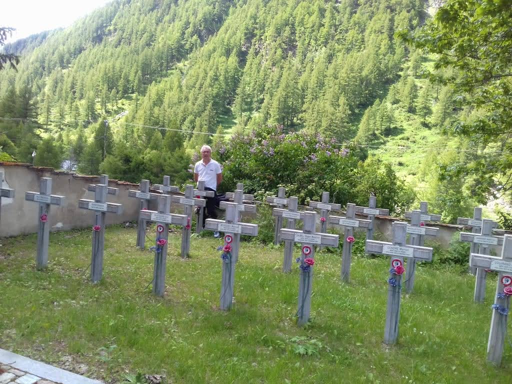 Dino Aluffi in visita al Sacrario di Ristolas in cui è conservata la memoria del sacrificio in battaglio dello zio