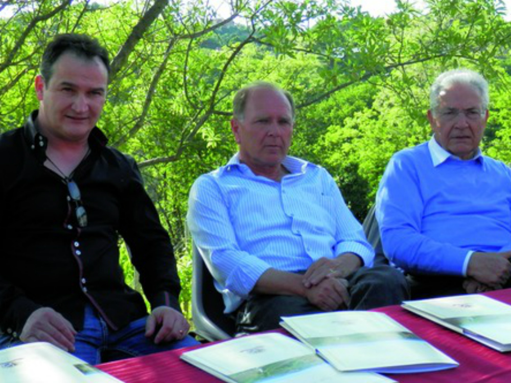 Ernestino Laiolo insieme al presidente della Cantina di Vinchio e Vaglio Serra Lorenzo Giordano e l'enologo Giuliano Noè