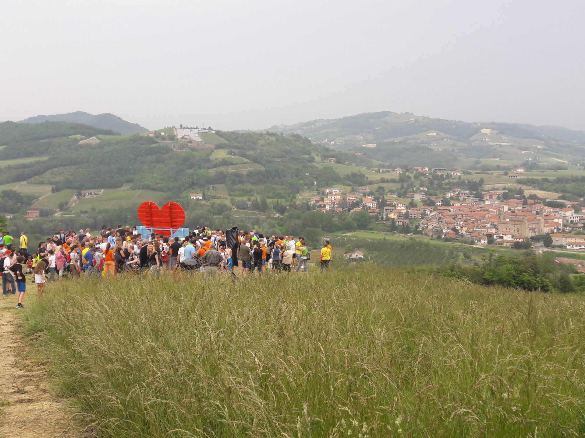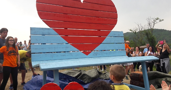 Da domenica scorsa un grande cuore rosso batte sul piccolo comune della Langa Astigiana, sulla collina di Regione San Rocco. Si tratta della panchina gigante realizzata dall'artista Raffaella Goslino, architetto di Monastero Bormida, e intitolata alla memoria di Fabio Francone, giovane imprenditore di 45 anni con la passione per la musica, scomparso prematuramente nel 2013 a seguito di un incidente stradale. Un evento che segnò profondamente la comunità in cui “dj Francone”viveva. Non solo perché l'uomo era uno stimato professionista e un appassionato organizzatore di eventi, vulcanico ed estroverso, di quelli che nei piccoli paesi trovi un po' ovunque perché sempre pronti a dare una mano e con tanta voglia di fare. Ma anche perché Francone lasciò vedova la giovane moglie Elisa e orfani i due figli ancora piccoli, Mattia e Giulia.