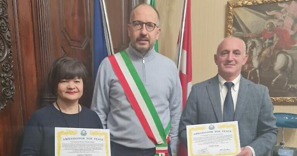 In occasione della Festa dell’Indipendenza dell’Albania o Festa della Bandiera, Dede Kola, Sabina Darova e Silvano Uppo hanno ricevuto il prestigioso riconoscimento di Ambassador for Peace dalla Universal Peace Federation, istituto a livello nazionale per la pace mondiale che ha sede in ogni Paese. Riconoscimento che è stato conferito a 22 persone: 10 italiani e 12 albanesi. Il Sindaco Maurizio Rasero, soddisfatto di aver appreso che tre nostri concittadini hanno ricevuto questa importante onorificenza, questa mattina li ha incontrati in Municipio per congratularsi personalmente con loro. All’incontro erano presenti Dede Kola e Sabina Darova, Silvano Uppo non ha potuto partecipare e verrà contattato prossimamente dal Sindaco. Rasero, nel congratularsi con i neo ambasciatori, ha chiesto loro alcune informazioni sull’assegnazione di questo importante riconoscimento e una loro breve presentazione: Dede Kola, geometra ed impresario edile, è stato uno dei fondatori e creatori dell’Associazione Assoalbania, Vice Presidente costruttori dell’Associazione Assoalbania Italia, a livello nazionale, sempre a disposizione della comunità albanese di cui fa parte. Sabina Darova, mediatrice culturale, lavora all’ASL AT e collabora col Comune di Asti per favorire l’integrazione e l’emancipazione delle donne e dei bambini, coordina un forum di donne albanesi dal nome “Tea Room” presso il centro culturale albanese per sensibilizzare e valorizzare la cultura albanese a livello femminile. Scrive su giornali online in Albania ed ha pubblicato due libri di poesia di cui uno con haiku. Il Primo Cittadino oltre a ringraziare i neo “ambasciatori” per la visita, ha ricordato che la comunità albanese ad Asti è la più numerosa ed in merito ha dichiarato: “Auspico che possiamo contare su di voi per rinsaldare il legame che esiste con la comunità albanese e confrontarci su progetti passati e futuri”. Nella foto: il Sindaco e i due ambasciatori.