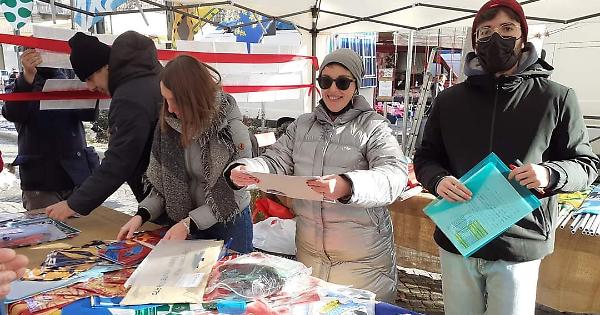 La bancarella del Collegio dei Rettori cattura l'attenzione dei turisti presenti in città