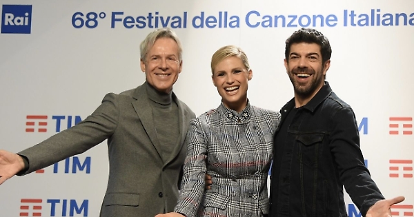 Dal sinistra Claudio Baglioni, Michelle Hunziker e Pierfrancesco Favino