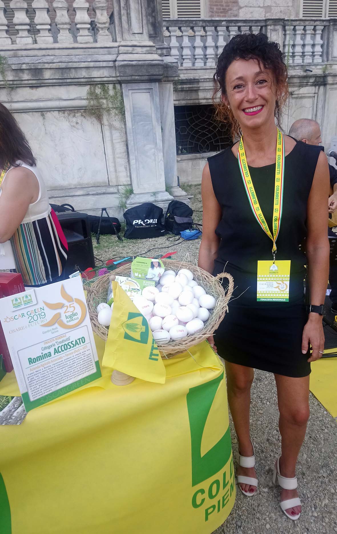 Romina Accossato di Ferrere è stata premiata per la categoria creatività, per aver saputo ideare un nuovo prodotto ricollocando l’azienda sul mercato. In particolare Romina, con il fratello Marco, ha aggiunto all’alimentazione delle galline, il latte vaccino a chilometro zero. Un toccasana per le ovaiole che hanno così dato alla luce il rinomato uovo da chef “La Piemunteisa”.