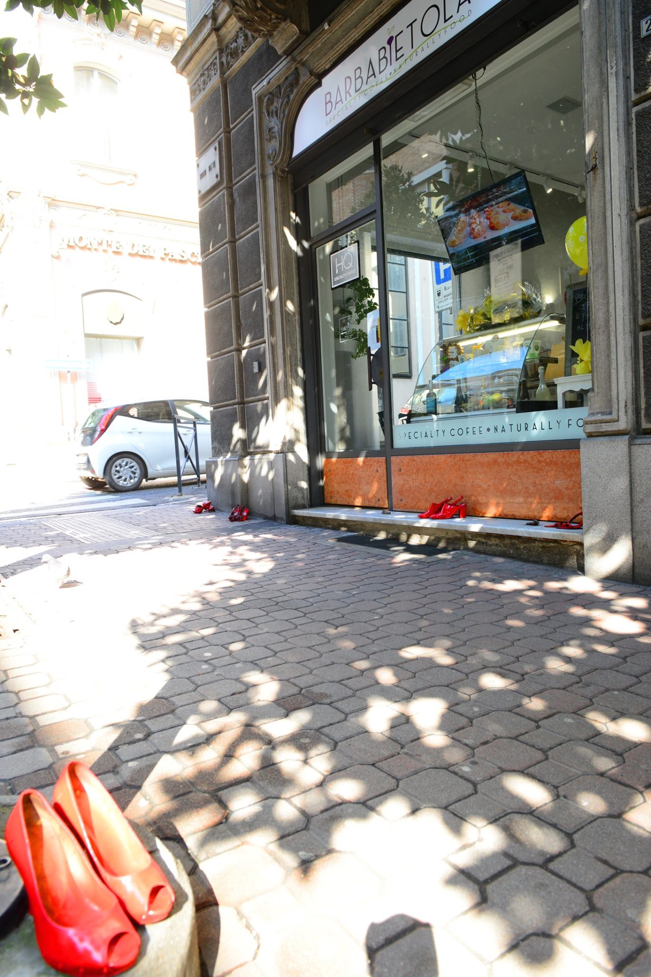 Un’idea partita dal titolare del Barbabietola, all’angolo con via Crispi che da lunedì le scarpe rosse le ha allestite anche fuori dal bar, sul marciapiede antistante e sotto gli alberi del corso. <È un modo per dichiarare la nostra sensibilità nei confronti delle donne - spiega Ezio Casalegno - Ci è sembrato un bel modo per festeggiare le donne e riconoscere la loro forza infinita e la loro importanza nella società e nelle nostre vite>.