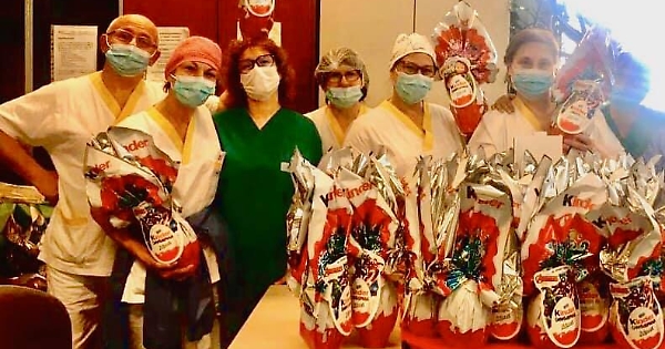 Numeri che, seppure al netto di valutazioni che riguardano l'arrivo massimo di esiti di tamponi fatti nel corso degli ultimi giorni, dovrebbero ulteriormente convincere le persone a restare a casa per passare fra le mura domestiche questa Pasqua sicuramente insolita. Come lo sarà per gli infermieri del Reparto Rianimazione che non potranno contare su vacanze o sospensioni di servizio ma che per il loro impegno, in segno di "dolce" riconoscenza, hanno ricevuto una fornitura di uova di Pasqua da parte della Ferrero di Alba (nella foto).
