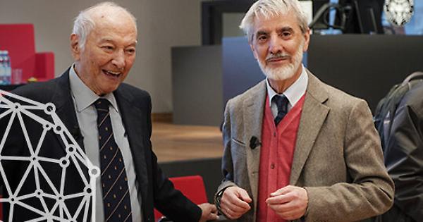 Nella foto: Piero Bianucci nel suo studio e con Piero Angela.