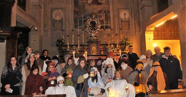 Questi i piccoli protagonisti: Caterina Marcanzin e Margherita Cantamessa, nel ruolo degli angioletti , che annunciano il lieto evento; Gaia Lazzaretti, nel ruolo di Maria, Giacomo Ferraris (San Giuseppe); Michela Nigrelli, Greta Torre, Rebecca Ferrero (pecorelle); Alberto Borgo, Marco Ravizza, Camilla Ferraris, Francesco Tirico, Marcello Tirico, Giacomo Paolini, Nicolò Mozzato, Gaia Rolla, Rene Fedrigo, Greta Del Fiume, Marko Milosevic, Massimo Nigrelli, Samir Chatoubi, Angelo Vanara (pastorelli e massaie), partiti dall’oratorio, hanno percorso le vie principali passando in piazza del Municipio, una colonna sonora di canti  natalizi, lo scampanellio del pastorello Matteo Lazzaretti  ed il vociare dei figuranti che hanno  fatto uscire dalle abitazioni la gente. E' stata la notte della nascita di Gesù Bambino, venuto a scaldare i nostri cuori. In chiesa dopo la novena, la voce narrante di Beatrice Brancato ha illustrato la natività di Gesù, secondo la tradizione con Maria, Giuseppe, e Gesù bambino, attorniato dagli angeli e figuranti. Sono stati i più piccoli a lanciare un messaggio di pace e speranza per il futuro. Una rappresentazione, molto seguita ed applaudita da genitori, nonni e da tutta la comunità. Papa Francesco è molto attento alla dimensione e alla spiritualità popolare, che sceglie di ritrovarsi nell’atmosfera natalizia e di stare insieme attraverso le riflessioni di questi percorsi di fede coinvolgendo più persone possibili.  il ringraziamento di don  Emanuele a quanti si sono prodigati per l’allestimento del presepe e delle scene in chiesa, dell’accolito Giorgio per gli addobbi  natalizi, alle pie donne per l’offerta dei fiori  sull’altare e della cantoria con nuovi brani  del loro repertorio… e per finire, a cura della Pro Loco, cioccolata calda per tutti.