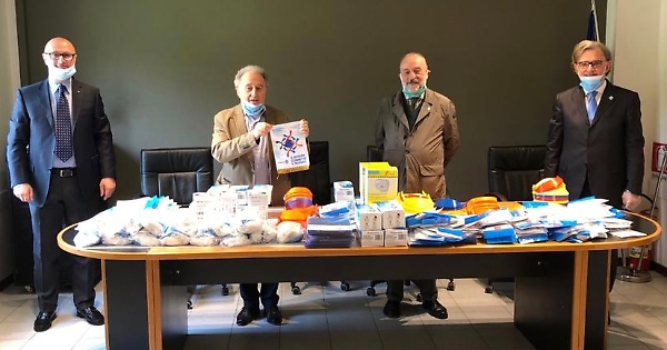 Incessante l’attività dei Club Rotary Asti. Dopo le varie azioni di solidarietà in favore dell’Ospedale Cardinal Massaia, già attuate nei giorni scorsi, questa mattina, nella festa del Santo Patrono San Secondo, un gruppo di dirigenti rotariani del Club della città, composto da Luigi Gentile assistente della Governatrice Inses Guatelli del Distretto 2032, con il presidente del club astigiano Carlo Alberto Goria, ed il segretario Marco Stobbione, si è recato nella sede dell’Ordine Medici Chirurghi e Odontoiatri di Asti dove sono state consegnate a Claudio Lucia presidente dell’Ordine e a Claudio Sciacca vicepresidente, 1000 mascherine FFp2, 1000 mascherine chirurgiche e 400 schermi in plexiglass donati dal Club Rotary tedesco di Friedrichshafen-Lindau, storico club gemello con Asti. Inoltre sono anche state consegnate 1200 mascherine chirurgiche donate dal Distretto 2032. Tutto il materiale tramite l’Ordine dei Medici, sarà distribuito ai medici di famiglia e ai colleghi ospedalieri attraverso la Direzione Sanitaria.