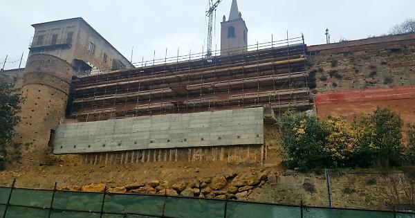 Si avvia a conclusione il consolidamento del muraglione di corso XXV Aprile a Moncalvo a tre anni dalla drammatica notte del 27 novembre 2019, quando una parte del manufatto crollò costringendo all'evacuazione delle famiglie residenti.