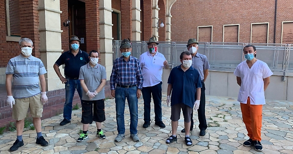 Dopo l’incontro conviviale presso la Casa degli Alpini, sede della Sezione di Asti dell’ANA, nel massimo rispetto delle normative di legge contro il Covid-19, con parenti, amici ed alpini, presente anche il past vice presidente nazionale ANA Mauro Buttigliero, l’alpino Dante (al centro della foto), accompagnato dal presidente della sezione di Asti, Fabrizio Pighin, e da alcuni alpini ha consegnato ottocentotrenta euro, frutto della raccolta, al presidente dell’Anffas Marcello Follis, presso la sede dell’Associazione. Alcuni ragazzi presenti con il loro operatore, hanno voluto ricordare questo particolare momento consegnando a Dante un fermacarte di ceramica da loro realizzato, raffigurante un cappello alpino.