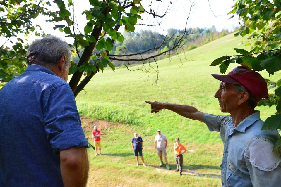 Vanni Cornero con Aldo Piano, a destra, proprietario del noccioleto e autore del primo ritrovamento nel 1997 (foto Billi)