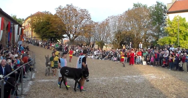 Gli asini non sono cavalcati, ma semplicemente incitati alla corsa da sei palafrenieri per ciascuna compagine. La corsa si annuncia combattuta ed è impossibile fare previsioni su chi riuscirà a strappare il drappo alla Brina, vincitrice un po’ a sorpresa lo scorso anno. Dopo la corsa, la consegna del Palio e l’assegnazione dei premi per il mercatino medievale e la sfilata, sotto la Tettoia di piazza Giordano verrà distribuita la fumante polenta con salciccia e gorgonzola.