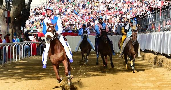 Ora il momento di paura per far riposare fantini e cavalli con un intermezzo degli sbandieratori. Atteso anche il sorteggio delle posizioni per la finale.