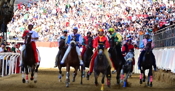 E così come accaduto nelle tre batterie di qualificazione, anche la finale registra una partenza falsa. Difficilissimo allineare i nove cavalli e nonostante la maggior parte di loro fosse in posizione, altri cavalli erano di traverso e dietro e questo ha convinto il mossiere a dare partenza falsa. (Foto Billi)