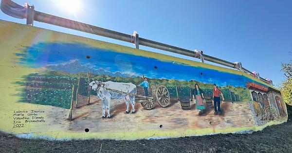 L’opera è stata realizzata dalla giovane artista penanghese Ludovica Imarisio, coadiuvata da Marta Gerbo, Valentina D’Amato e Iris Brusaschetto. Il murales si divide in due parti e racconta la vendemmia degli anni 50/60 dalla raccolta dell’uva fino alla pigiatura fatta con i piedi. Parte del murales è tratto da una vecchia fotografia del nonno di Ludovica Imarisio. Quest’opera completa una serie di decorazioni artistiche presenti in paese (trò, pastelli panoramici e sculture di fossili), risultato del forte legame che unisce l'amministrazione comunale di Penango e i giovani penanghesi.