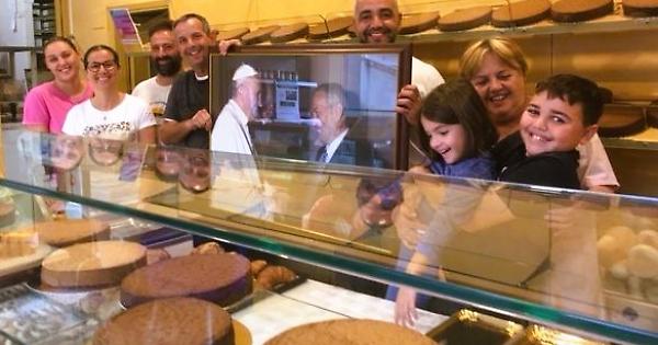 La pasticceria Panzini ricorda Gianmarco Rebaudengo, già sindaco di Montechiaro e vulcanico Rettore storico del Comitato Palio con una gigantografia che farà bella mostra di sè, in negozio, in occasione del decennale incontro con Papa Francesco (foto sotto).
