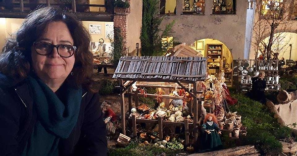 Anna Rosa Nicola davanti al suo presepe esposto a Vezzolano