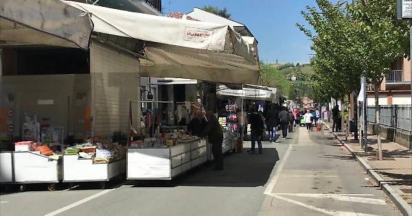 Vie e piazze del centro storico sono divenute sede dal mattino alla sera del Gran Mercato della Fiera: tra piazza Marconi e viale Partigiani, piazza Garibaldi e via Pistone si snodava un lungo itinerario vivacizzato da bancarelle di vario genere, dall’abbigliamento ai casalinghi, dalle scarpe all’artigianato. Grande movimento anche in via Carlo Alberto, dove si potevano trovare prodotti tipici e di eccellenza, così come in via Pio Corsi, dove golosità per il palato venivano proposte dai negozianti della zona.