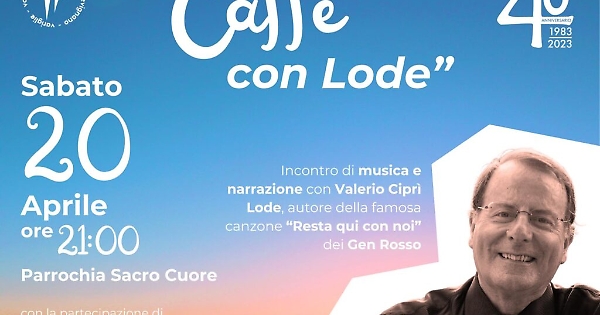 Continuano le celebrazioni per i 40 anni della parrocchia Sacro Cuore. Domani (sabato) l'incontro “Caffè con Lode” avrà un ospite speciale. Si tratta di Valerio Ciprì detto “Lode”, tra i fondatori del gruppo musicale “Gen Rosso”, chitarrista, compositore e autore di testi e canzoni tra cui la famosa “Resta qui con noi”. L’incontro tra musica e narrazione - al quale parteciperanno anche il coro parrocchiale Sacro Cuore e il coro famiglia San Domenico Savio - si terrà alle 21 nella parrocchia.