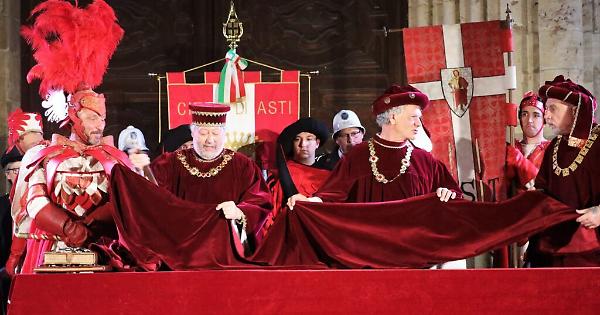 In caso di maltempo le cerimonie del Giuramento e della Stima dei Drappi avranno luogo al Teatro Alfieri alle 21,15 e il corteo in notturna non avrà luogo.