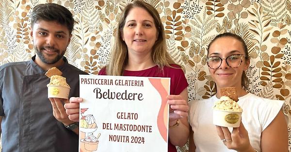Inventori del gelato, che omaggia l’animale preistorico del Villafranchiano, sono due giovani pasticceri, Paolo Belvedere e Alessio Varbella, che nei mesi scorsi hanno seguito in Emilia un corso di formazione dal Mastro gelataio Simone De Feo, premiato con i tre coni nella guida delle gelaterie del Gambero Rosso.