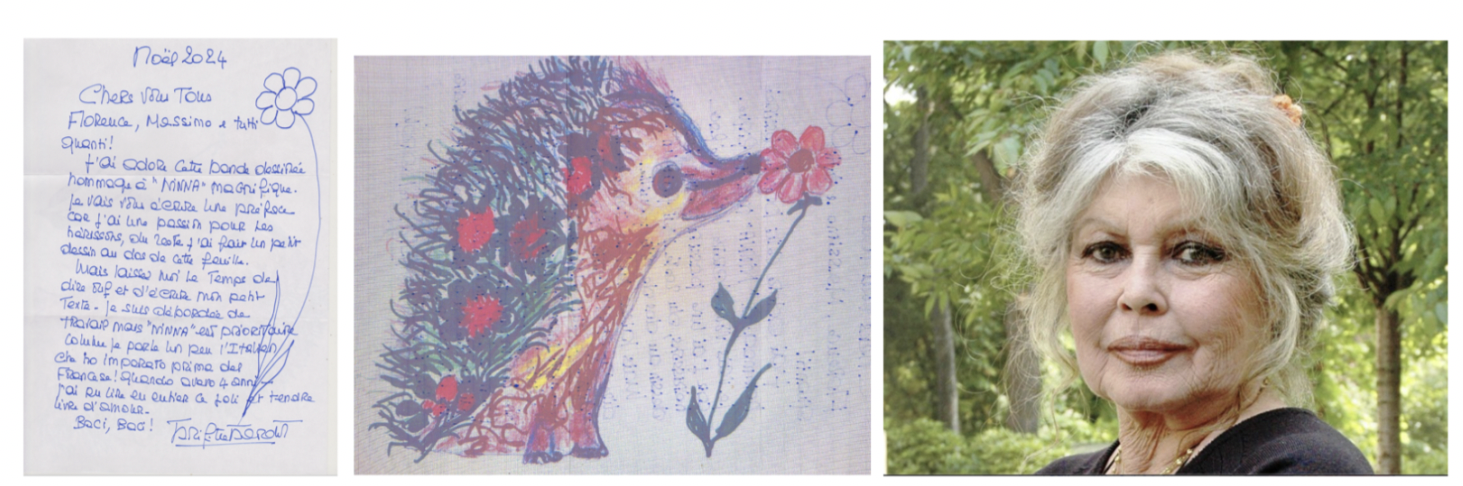 Nella lettera, Brigitte Bardot scriveva: «Ho adorato questo magnifico fumetto, omaggio a Ninna. Vi scriverò una prefazione perché ho una passione per i ricci… Sono riuscita a leggere interamente questo bello e tenero libro d’amore… La Ninna è prioritaria». Parole che oggi, a distanza di un anno esatto dalla sua scomparsa, commuovono e impressionano.
