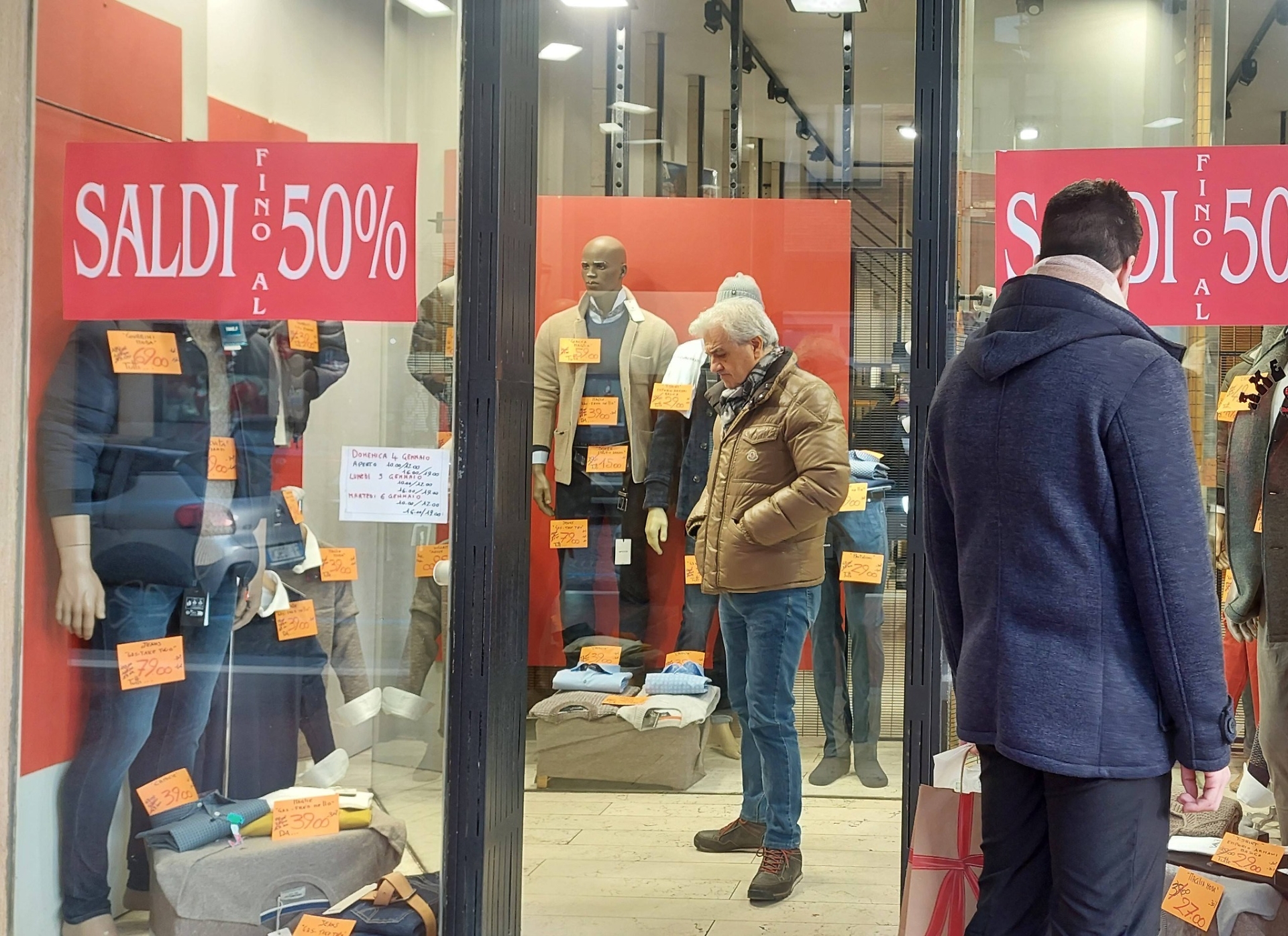 Le vetrine si svestono delle decorazioni natalizie e spuntano i saldi