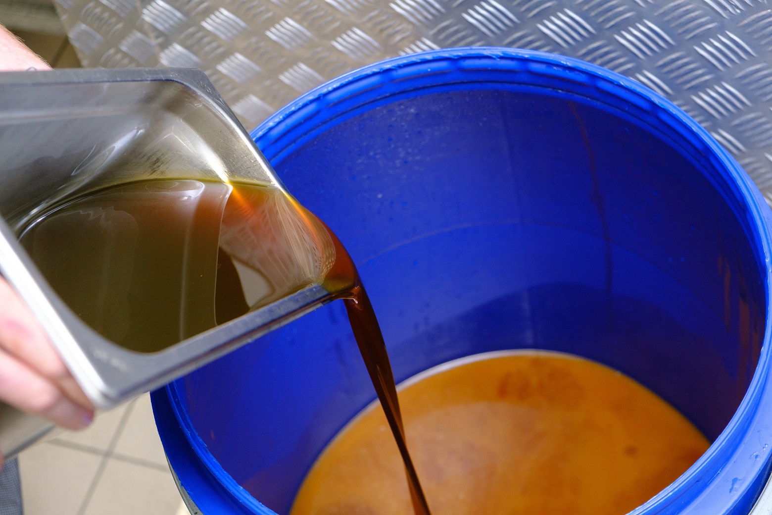 L'addetto durante la raccolta degli oli vegetali esausti