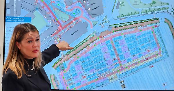 L'assessore al Commercio Loretta Bologna presenta la mappa definitiva del mercato diviso su due zone
