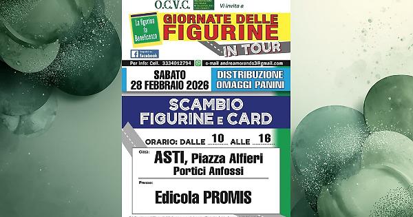 Nel corso dell’evento saranno distribuiti gratuitamente gli album della raccolta "Calciatori 2025-26" e i relativi pacchetti di figurine messi a disposizione da Panini; sarà inoltre possibile scambiare figurine e card di qualsiasi collezione. L’appuntamento rappresenta un gustoso preludio alla 17ª edizione delle "Giornate delle figurine", in calendario ad Asti dal 10 al 12 aprile.