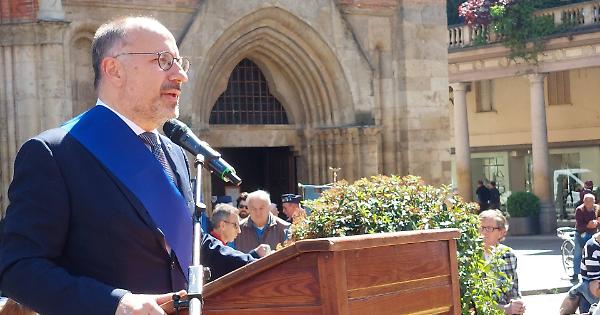 Il sindaco e quasi ex presidente della Provincia Maurizio Rasero durante il discorso in occasione del 25 Aprile [foto Ago]