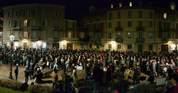 Il primo flashmob delle 6.000 Sardine di Asti è andato bene, almeno secondo gli organizzatori che si dicono più che soddisfatti per la risposta degli astigiani. Sabato pomeriggio, alle 17.30, la centrale piazza Medici era mezza piena e, secondo una prima stima, tra 250 e 300 Sardine avrebbero partecipato al flashmob organizzato per dire no «al clima di odio e intolleranza che si è instaurato in questi ultimi anni».