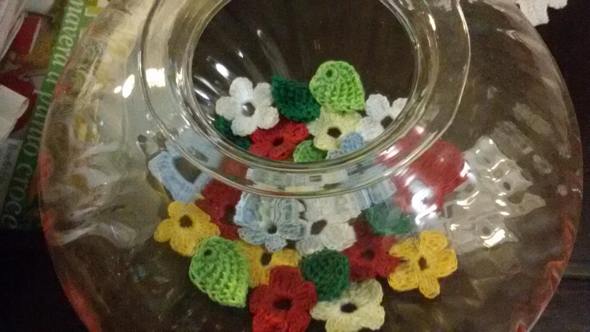 Piccoli e graziosi fiori e foglie all'uncinetto rinnovano l'arredo di casa