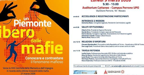 Appuntamento lunedì 9 marzo 2026 dalle 9.30 alle 13 a Novara, presso l’Auditorium Cattaneo del Campus dell’Università del Piemonte orientale (via Ettore Perrone 18, Novara), con l’intervento di autorevoli relatori, fra cui magistrati, accademici ed esponenti dell’associazione Libera.