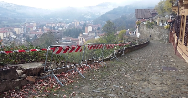 Crolla un pezzo di muro lungo la Sternia, il caratteristico acciottolato che da piazza San Tommaso si arrampica lungo la collina di Villanuova sino al castello Gancia. Le forti piogge delle ultime settimane hanno provocato il parziale cedimento del muretto che sostiene, a valle, il camminamento poco prima dell’ex chiesa di San Rocco.