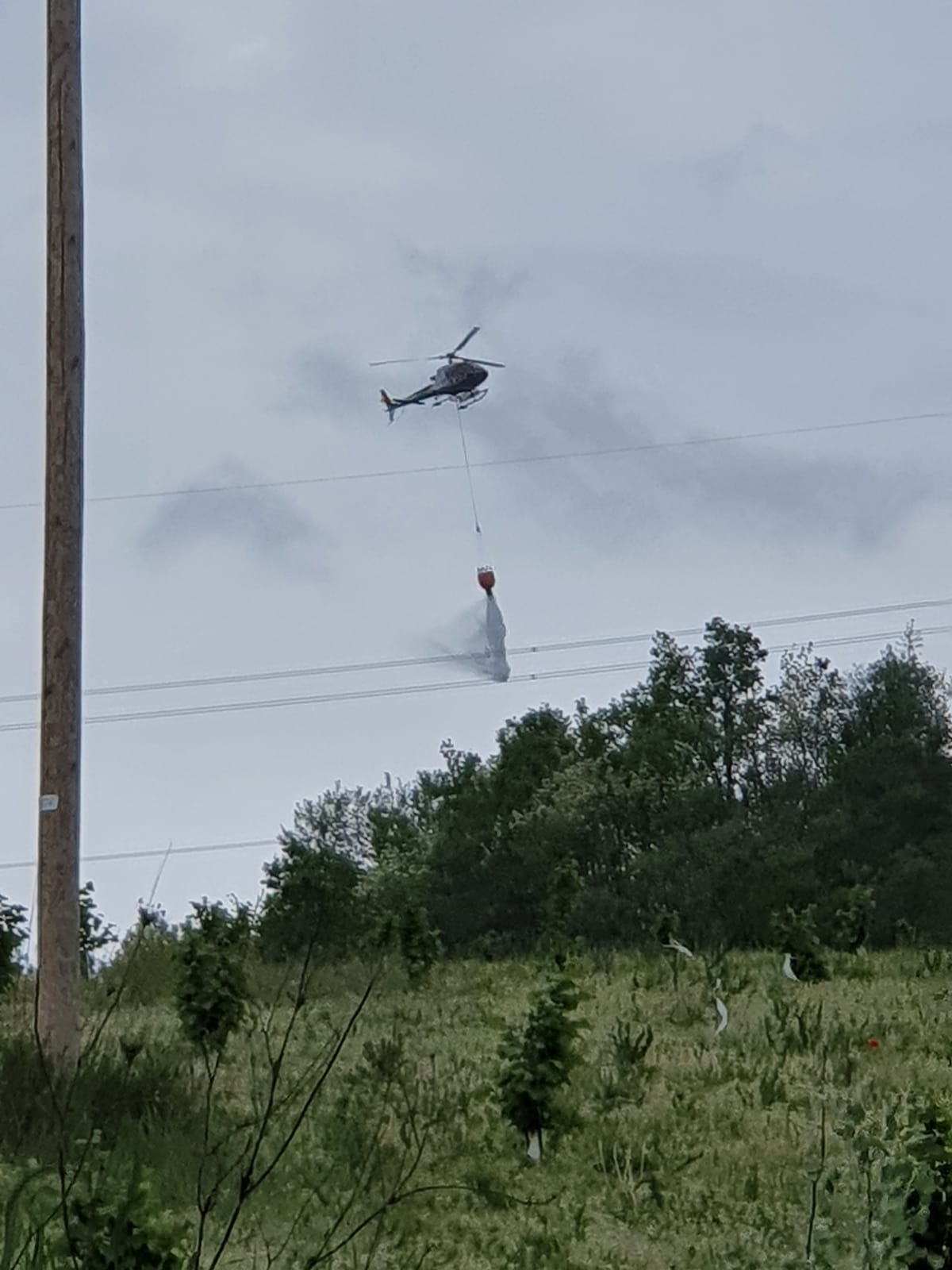 L'elicottero dei Vigili del Fuoco che ha scaricato acqua dal cielo