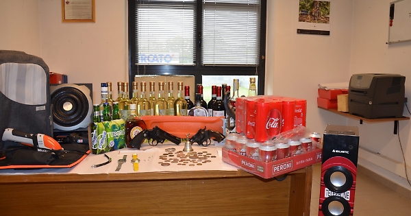I militari hanno fatto irruzione nell'alloggio, in cui si trovavano le due persone persone lì domiciliate, di origine albanese, scoprendo due riproduzioni di pistole revolver a salve e vari oggetti ritenuti di dubbia provenienza. «Il materiale sottoposto a sequestro in parte era riconducibile ad un furto messo a segno alcuni giorni prima in un centro sportivo di Magliano Alfieri (Cuneo): nel dettaglio vari generi alimentari, tra i quali bevande superalcoliche, alcoliche ed analcoliche, mentre altri oggetti erano verosimilmente provento di altre azioni delittuose - spiegano dal comando dei carabinieri di via Delle corse - In particolare sono stati sequestrati una motosega marca Stihl, un rasasiepi elettrico marca Stihl, uno zaino marca Next di colore grigio, un orologio digitale in acciaio marca Casio, un orologio marca Swatch modello Irony con cinturino in cuoio di colore giallo, una campanella in argento con un angioletto, un braccialetto in corda ed acciaio con su inciso la scritta “per sempre tua.. tvb Sandra”, un braccialetto in acciaio con la scritta “Gabri”, due fedine in argento, varie monete antiche nazionali ed internazionali, una medaglia ricordo in argento della Cassa di Risparmio di Torino, una cassa acustica marca Trust».