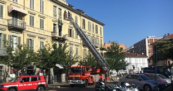 Calcinacci da un balcone al secondo piano di un palazzo di piazza Marconi, di fronte alla stazione ferroviaria, sono caduti questa mattina durante un'operazione di trasloco. La ditta astigiana di traslochi aveva installato l'autoscala e fissato la guida al balcone, facendo quindi salire il cestello (vuoto), del peso di circa 30 chili. «Quando il cestello ha iniziato a salire, prima ancora di raggiungere il balcone, la balaustra dello stesso balcone, ancora del materiale originario, come quello del primo piano, a differenza degli altri balconi dell'edificio, che sono in ferro, è caduta verso l'interno - spiega l'azienda di traslochi - Per fortuna nessun pezzo del manufatto è finito sul marciapiede. Poteva ben andare peggio». I vigili del fuoco sono intervenuti per verificare l'accaduto e, per motivi precauzionali, hanno provveduto a "bandellare" la zona per impedire il passaggio dei pedoni al di sotto del balcone. Nessuno è rimasto ferito e non si sono registrati gravi danni. L'intervento dei vigili del fuoco con l'autoscala, in un momento di particolare passaggio in zona, ha attirato la curiosità dei passanti. I vigili del fuoco del comando di via Marello sono intervenuti questa mattina anche per un anziano deceduto in casa in via Dettoni e un incendio sterpaglie.