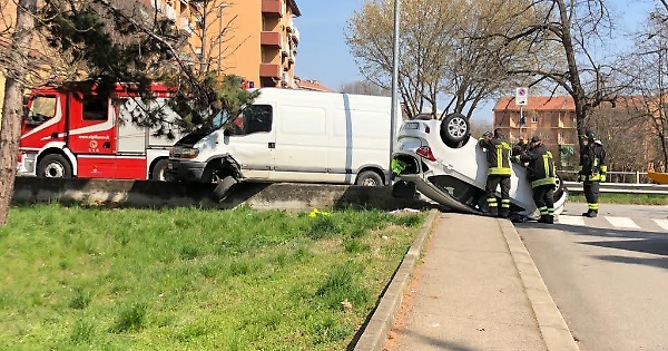 Incidente questa mattina (lunedì) intorno a mezzogiorno in corso Palestro, all'angolo con via Sardegna. Si sono scontrati un furgone Renault Master e una vettura Hyundai 10, che viaggiavano nella stessa direzione. Una svolta all'incrocio potrebbe essere all'origine dello scontro: la dinamica e responsabilità dell'incidente sono al vaglio degli agenti della polizia municipale di Asti. I conducenti dei due mezzi non hanno riportato gravi ferite, secondo quanto si è potuto sapere. Sul posto, oltre alla pattuglia della polizia municipale per i rilievi, sono intervenuti anche i vigili del fuoco per liberare la strada. (Foto Ago)