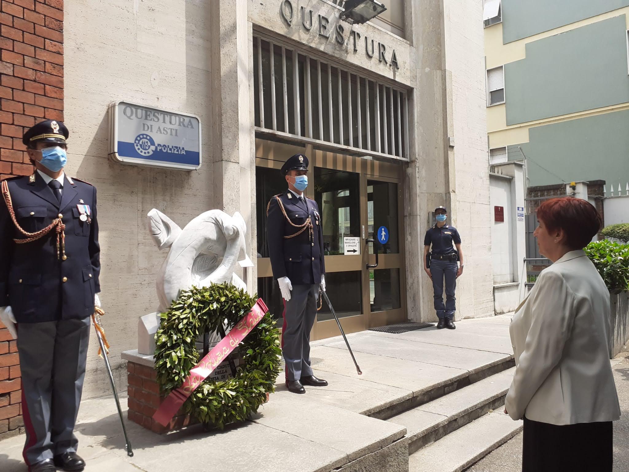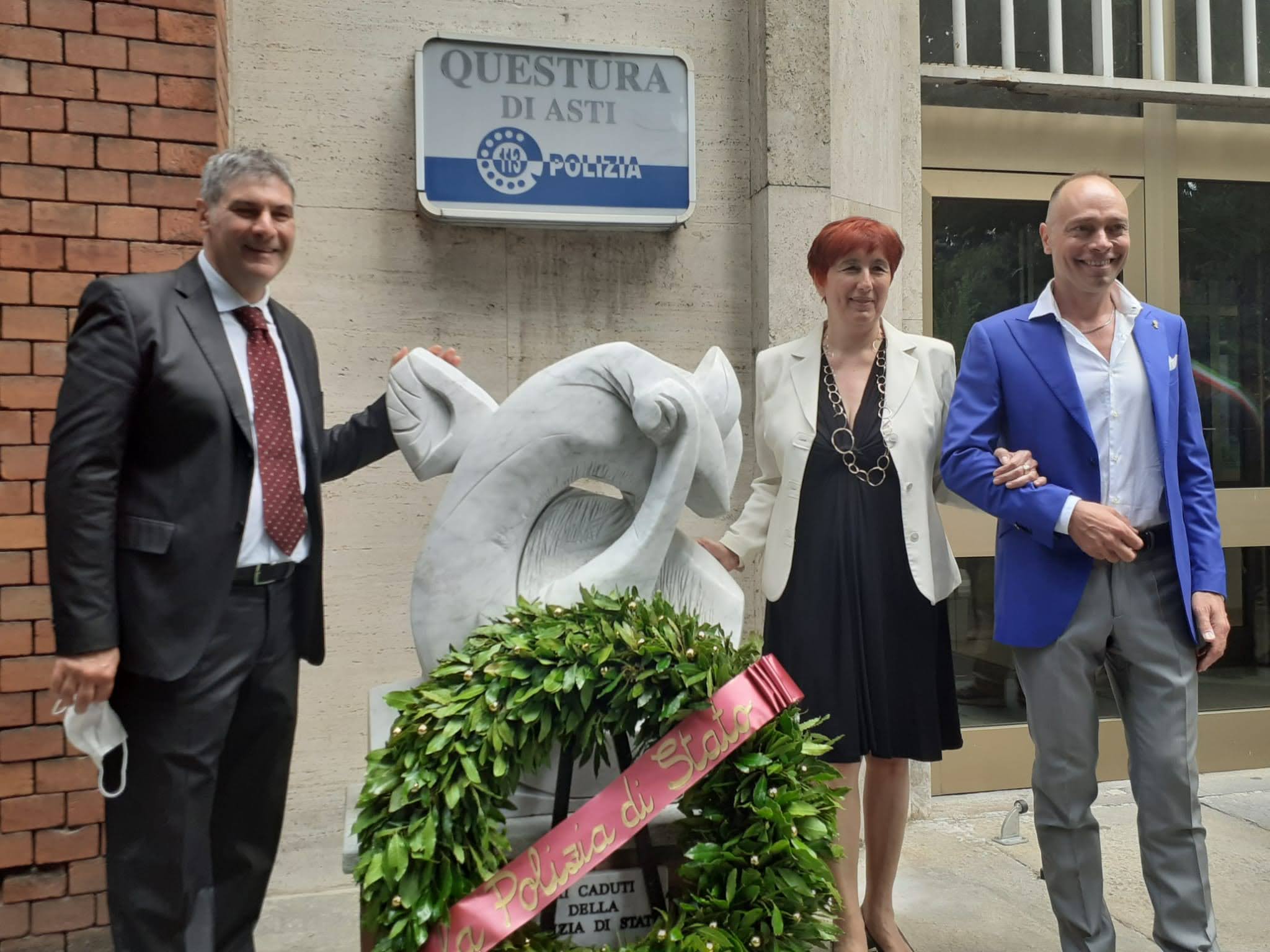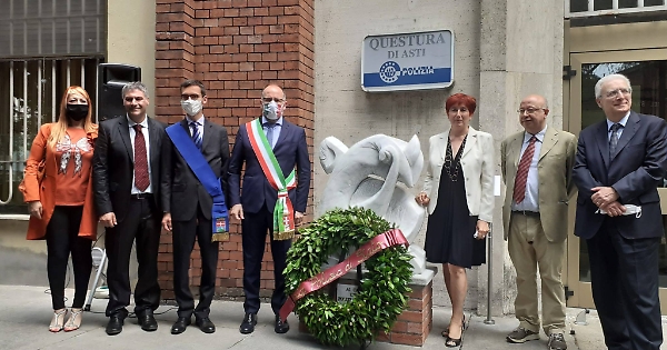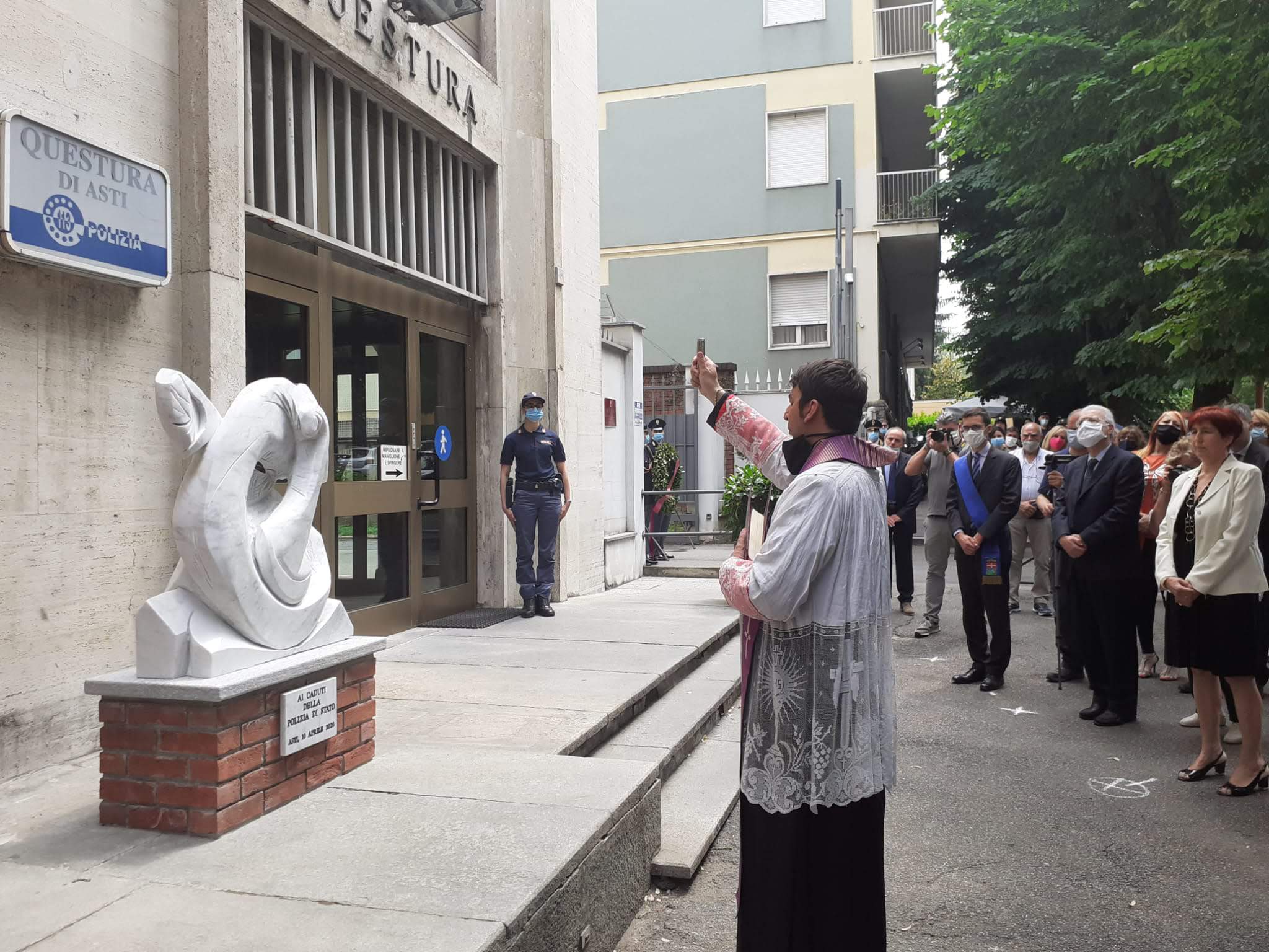 Una cerimonia sentita questa mattina di fronte all’ingresso della Questura di Asti per l’inaugurazione del Monumento ai caduti della polizia rappresentato dall’opera “Il sacrificio”, realizzato da Giorgio Bisanti, sovrintendente capo della polizia a Roma, pittore e scultore, già autore del dipinto posto lo scorso anno nell’atrio della Questura cittadina. Il Questore Alessandra Faranda Cordella ha accolto i presenti con il suo saluto e il suo intervento, scoprendo poi il monumento posto accanto all’ingresso della Questura. A seguire il cappellano della polizia astigiana don Augusto Piccoli ha dato la benedizione alla scultura e il Questore ha reso omaggio ai caduti attraverso la deposizione di una corona, accompagnata dalle note del “Silenzio”. Ha concluso la breve ma intensa cerimonia l’esecuzione a cappella del “Va pensiero” del Nabucco di Giuseppe Verdi da parte del tenore astigiano Enrico Iviglia.