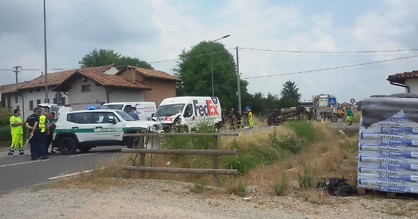 Scontro tra il furgone di un corriere e un mezzo della raccolta rifiuti pochi minuti fa a Motta di Costigliole, sulla statale Asti-Alba, all'incrocio della borgata Chiabotti, a poca distanza dalla rotatoria del centro paese. Intorno alle 12 è avvenuto l'incidente tra il furgone e il mezzo che effettuava questa mattina la raccolta porta a porta dei rifiuti indifferenziati per il Comune di Costigliole. Il mezzo della raccolta rifiuti si è ribaltato, finendo su un fianco al centro dell'incrocio, mentre il furgone è rimasto al centro della carreggiata. Sul posto in questo momento i soccorritori: le ambulanze del 118, i vigili del fuoco, gli agenti della polizia locale di Costigliole che stanno effettuando i rilievi per stabilire la dinamica dell'incidente, i carabinieri di Costigliole, con il maresciallo Sarcinelli, per garantire la sicurezza in strada, e il soccorso stradale. Ferito l'autista del mezzo per la raccolta rifiuti, già trasferito in ospedale ad Asti: secondo quanto si è potuto sapere sul posto, le sue condizioni non sarebbero gravi. Il traffico in transito sulla statale Asti-Alba è stato deviato su via Chiabotti, stradina interna della borgata che corre parallela alla statale.