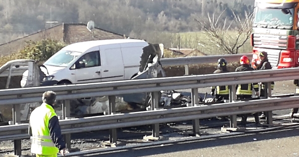 Sul posto, oltre alla Polizia Stradale di San Michele e i mezzi del 118, anche diverse squadre dei Vigili del Fuoco di Asti a causa dell'incendio provocato dallo scoppio di alcune bombole di ossigeno. Si registrano anche alcuni feriti.