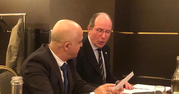 Dopo gli interventi del presidente nazionale Carlo Benigni, di Angelo Pezzana e del presidente della comunità ebraica di Roma, Ruth Durighello, l'ambasciatore di Israele in Italia, Dror Eydar (nella foto con Luigi Florio) ha tenuto un'ampia relazione su Israele e sulla situazione geopolitica internazionale. Nel ringraziare le associazioni per il lavoro svolto contro il crescente antisemitismo, ha detto: «Oggi si manifesta soprattutto come odio verso lo Stato di Israele colpevole di avere ridata una patria agli ebrei dopo duemila anni di disapora e la tragedia della Shoah».