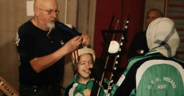 Giulia, tetraplegica con diverse distonie dovuta ad ipossia prenatale, controlla poco i movimenti ai muscoli superiori, può utilizzare autonomamente solo un piede ed è con quello (e con un apposito attrezzo) che si avvia a diventare una campioncina di bocce.